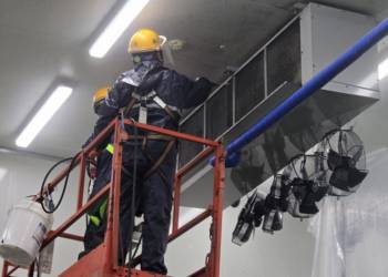 UNIT COOLER 청소란 냉동창고, 냉장창고, 식품 공장, 물류센터 등에서 사용되는 유니트 쿨러(Unit Cooler) 내부에 쌓인 먼지, 기름, 얼음, 곰팡이 등의 오염물을 제거하여 냉각 효율을 유지하고 위생적인 환경을 확보하기 위해 실시하는 유지관리 작업을 말합니다. 유니트 쿨러는 증발기 코일과 팬을 이용해 공기를 냉각시키고 차가운 공기를 공간 내부로 순환시키는 장치로, 장시간 운전되면 공기 중의 먼지와 이물질이 코일과 팬에 쌓여 냉각 성능이 저하될 수 있습니다.